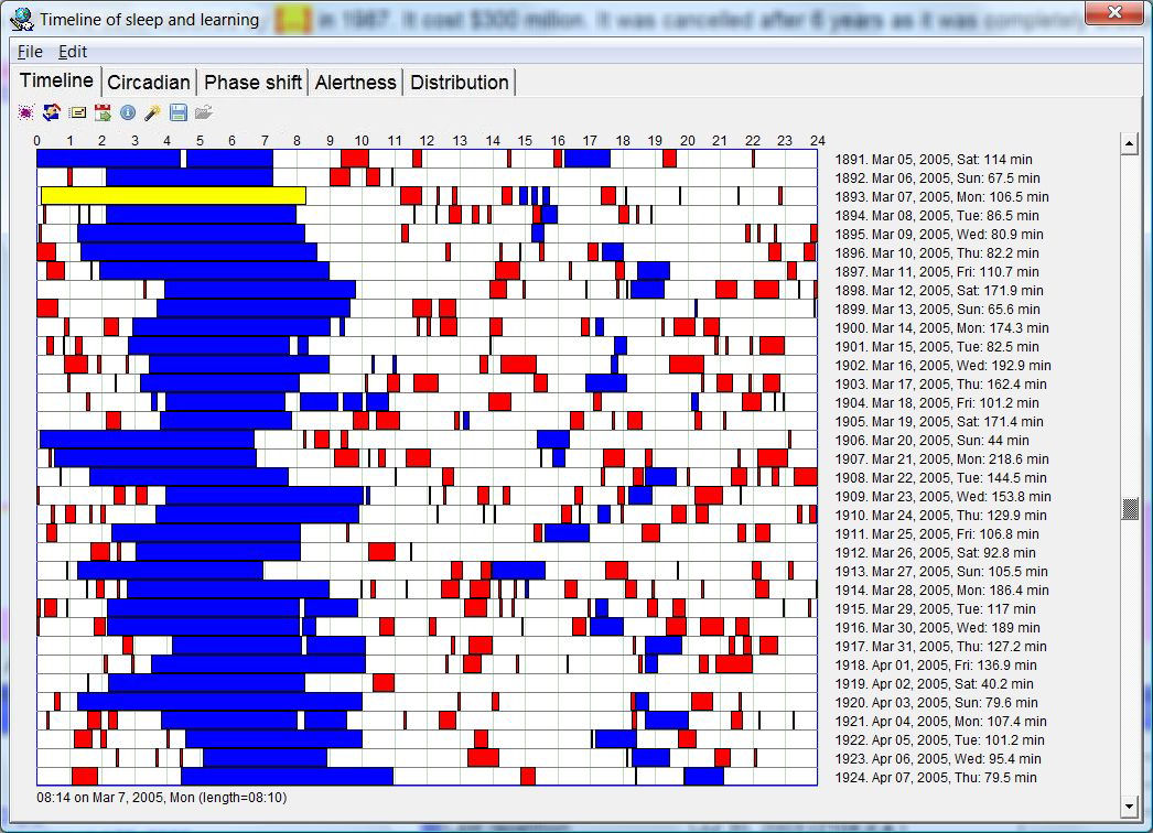 SuperMemo 2008 makes it easy to collect your sleep data. This data should help you optimize the timing of your learning sessions. It can also be used to optimize the timing of sleep (if your sleep patterns are irregular, e.g. when working in shifts).