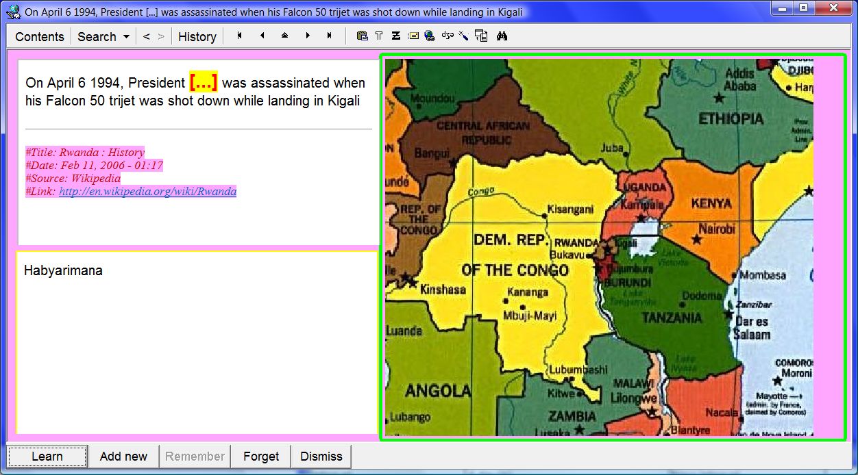 A picture is worth a thousand words. That old adage holds true when learning with SuperMemo. This is why SuperMemo 2008 puts a heavy emphasis on making it easy to add visual cues to your collections. You can easily search for pictures on the net and import them to SuperMemo. Zooming on interesting portions of the picture, slicing, cropping, cloning, moving focus, etc. can all be done with a single action of a mouse. For more see: Visual learning.