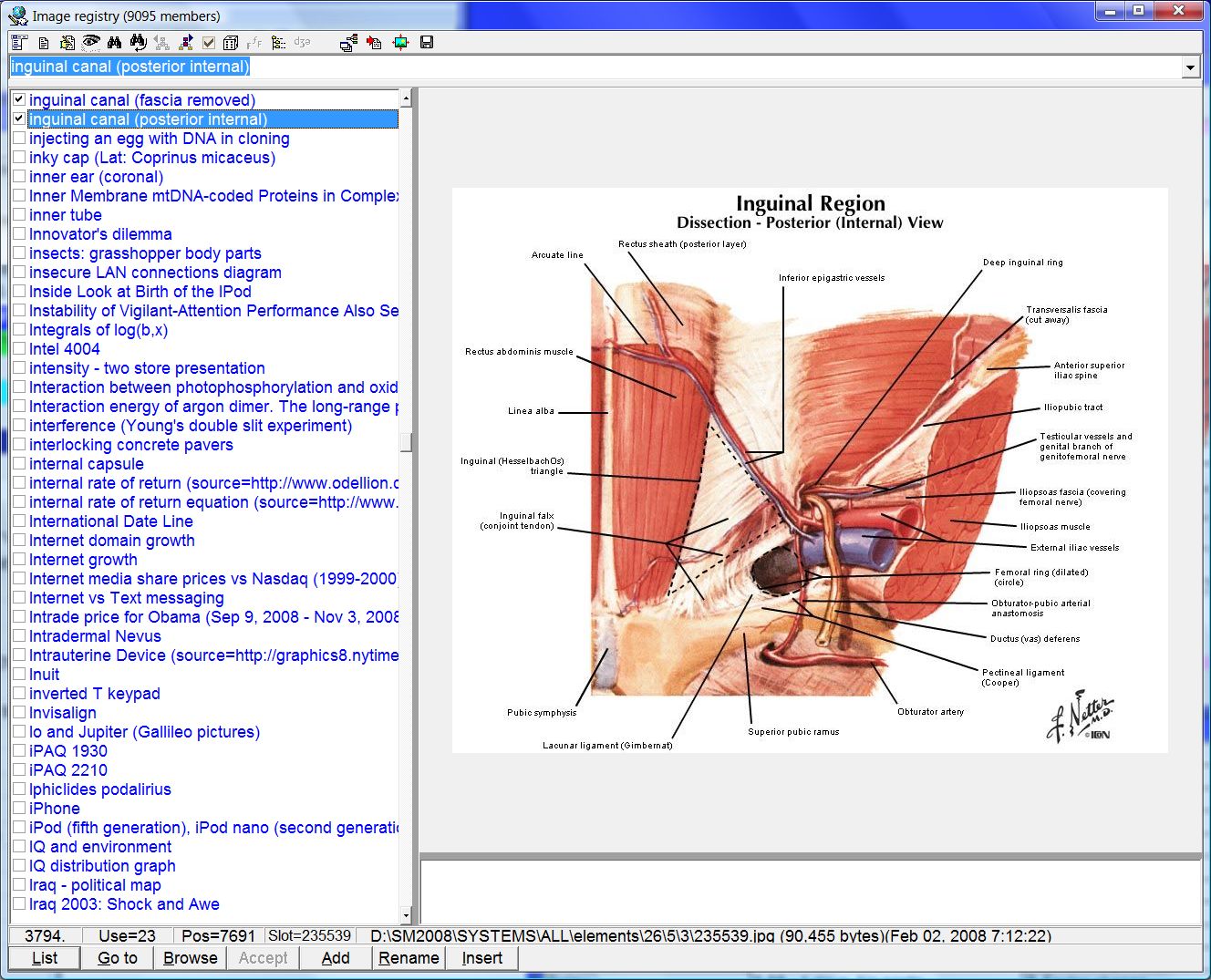 Registries make it easy to reuse and search for multimedia objects, texts, fonts, HTML files, video, etc. The picture below shows an example of an image registry: