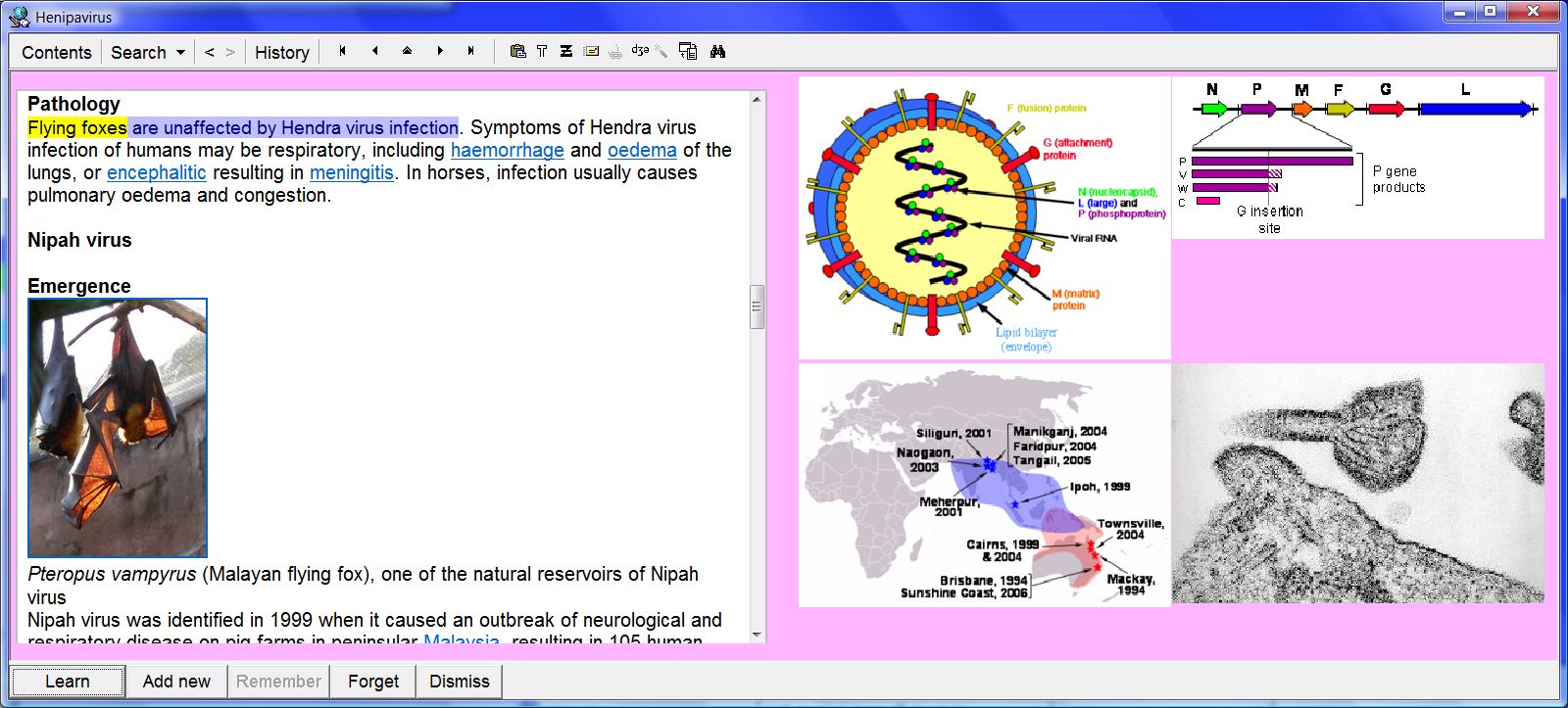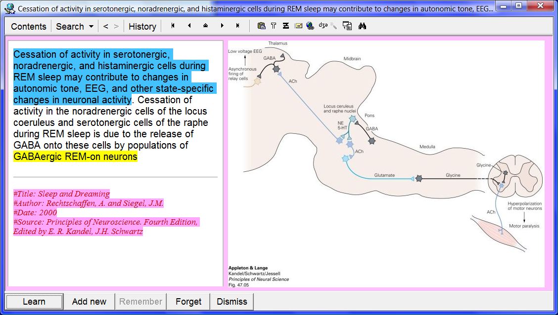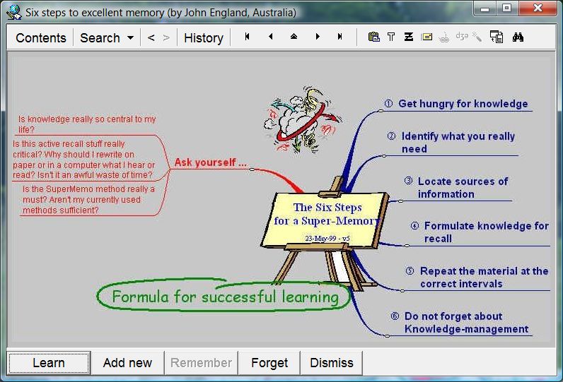 SuperMemo makes it possible to learn knowledge represented as text, pictures, sounds, video, HTML and more: