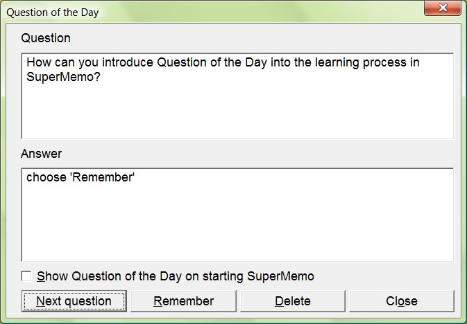 Question of the Day will help you become familiar with the basics of SuperMemo: