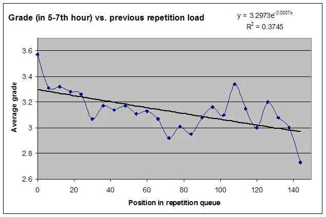 Over the last few months, I tried to see what conclusions could be drawn from the newly available data, which I collected from a few early adopters of SuperMemo 2006. The data is scarce, the period was short, however, the potential value of correlative investigations can already be seen. Here are a few cursory glimpses at the data: