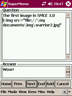 SuperMemo for Pocket PC 3.0 presenting the use of HTML: