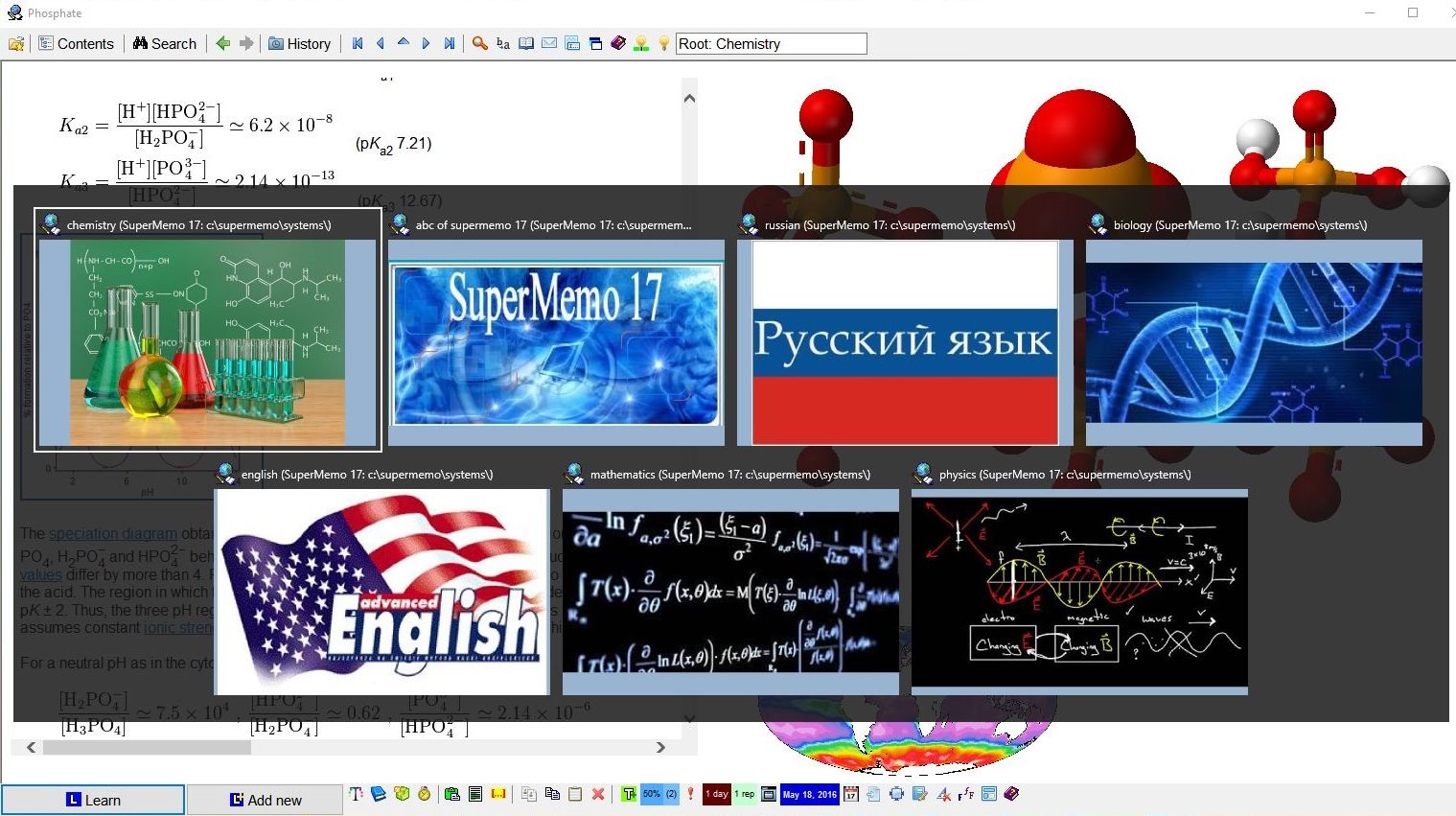 Figure: In Windows 10, SuperMemo background can be used as a nice visual collection chooser between active collections opened in separate instances of SuperMemo running simultaneously. Use Alt+Tab to switch between collections, or click the collection of your choice. This new feature comes with Windows 10, not with SuperMemo 17. You can also use SuperMemo background pictures in this way in SuperMemo 16 in Windows 10.
