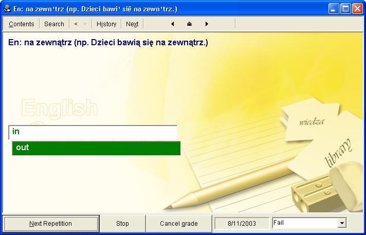 English Speller 2004 Polish Ed. offers all the English words and phrases that beginners need to know. Together with SuperMemo, it probably makes the best and fastest start on the avenue towards excellent English.