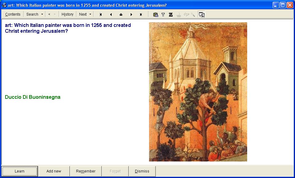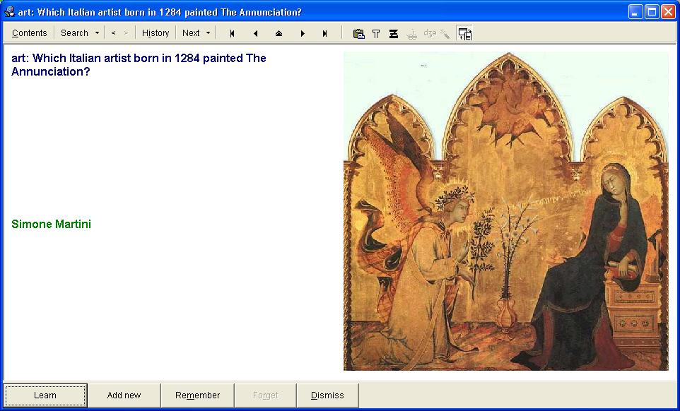 To use this material you need the SuperMemo software Go to another website with more information. In the table below can you find what versions of SuperMemo the Famous Painters 1201-1400 collection is compatible with