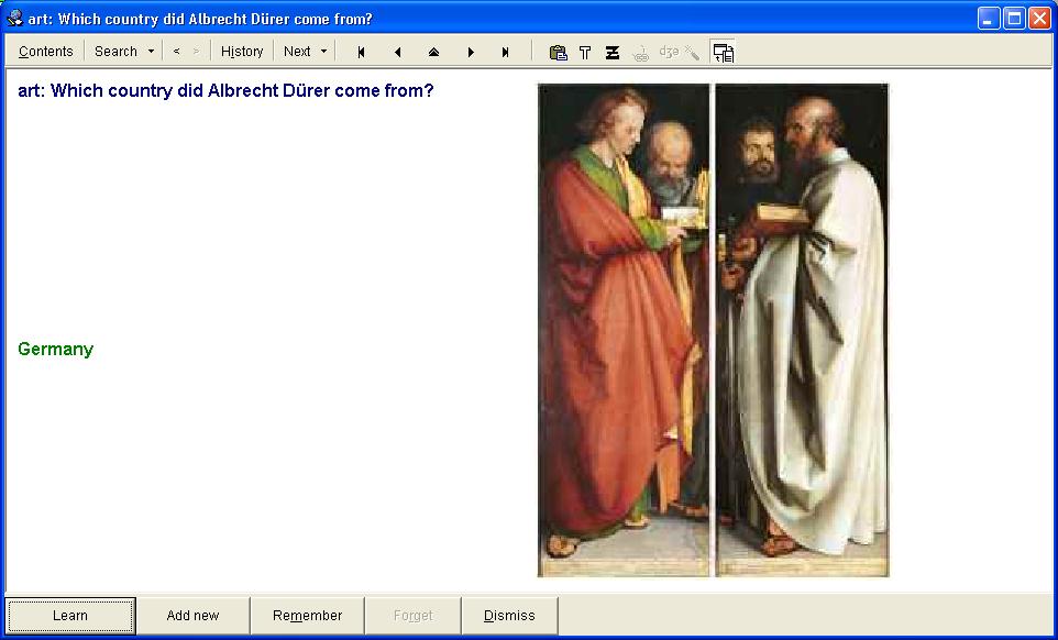To use this material you need the SuperMemo software Go to another website with more information. In the table below can you find what versions of SuperMemo the Famous Painters 1401-1500 collection is compatible with