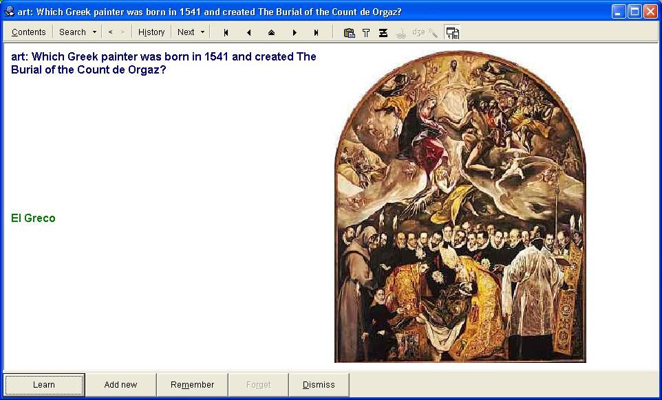 To use this material you need the SuperMemo software Go to another website with more information. In the table below can you find what versions of SuperMemo the Famous Painters 1501-1600 collection is compatible with